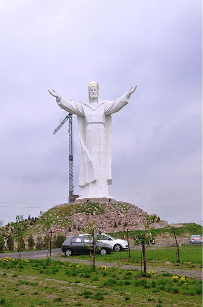 Статуя после строительства, 2010 г. Высота статуи 36 м. Высота холма-постамента: 16 м.