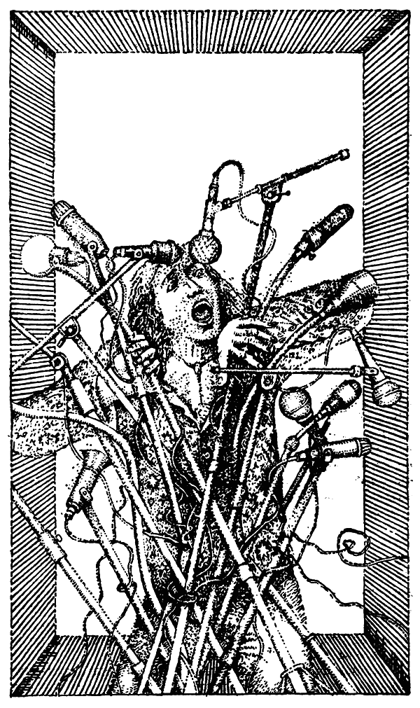 Он слышит привычную музыку. Он проходит по темному коридору, слегка натыкаясь на кулисные стойки. Чья-то незнакомая ладонь сжимает его руку. Ему надо выйти на свет. Мгновенье он в нерешительности стоит у черты этого резкого до боли светового круга. «Иди, иди!» — шепотом подсказывают чьи-то голоса. Из-за кулис Анна-Мари, Полина, Джина, Фредди, прижавшись друг к другу, видят, как весь зал уже встал, слышат, как нарастает безумный крик, но замечают также, что Дикки на несколько секунд замер посреди сцены, начал петь непривычно, с едва уловимой заминкой. Руки его складываются и раскрываются, но… На самом деле Дикки находится на колосниках и, собрав всю свою волю, пытается там, внизу, управлять большой марионеткой, у которой такой тяжелый вес. «Они заметят… Они заметят, что я автомат!» — нашептывает ему его опустошенный мозг. Но он поет, устремив взгляд поверх публики: главное не встретить ничей взгляд! Жесты у Дикки более механические, голос — более твердый. Но он поет, ему аплодируют, его приветствует криками эта толпа, которую опьяняет собственный бред. Что-то с тихим стуком снова и снова падает у его ног — цветы, маленькие пакетики с подарками… Но он не показывает вида, что замечает это, и кланяется. Сегодня вечером его удача в том, чтобы оставаться автоматом.