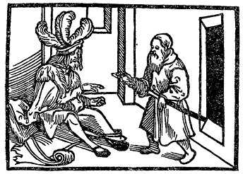 Все это лицезрел Фортунат, и пришлось это ему по вкусу, он только и делал, что ходил и скакал по двору. Но когда удалялся он ко двору, то не оставлял ничего на постоялом дворе. Это не понравилось хозяину, ибо тот не знал его и опасался, что он ускачет прочь, не уплатив, как зачастую случалось с ним прежде и еще случается на подобных свадьбах. Потому он сказал Фортунату так: «Дорогой друг, вы мне неведомы, окажите любезность и уплатите мне вперед за все дни». В ответ Фортунат рассмеялся и сказал: «Любезный хозяин, я не собираюсь бежать, не расплатившись!».