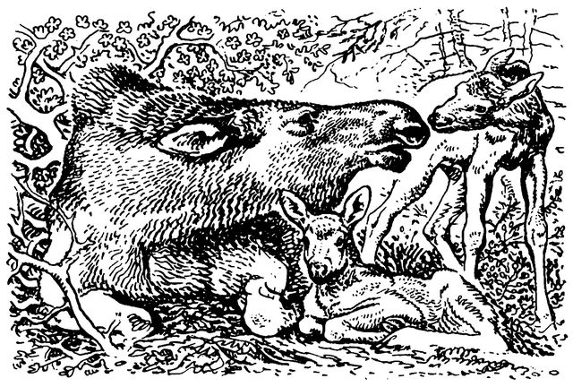 Бык бежал довольно долго. Уже взошло солнце, позолотив серый дымок, стоящий над лесом, но просветов в дыму он не обнаружил. К его ужасу, дым даже начал сгущаться. Труднее стало дышать. Лось повернул чуть в сторону, немного пробежал — дым стал еще гуще. Он несколько раз кашлянул, и вдруг до его слуха донесся гул пламени, охватившего лес, и треск сгорающих стволов…