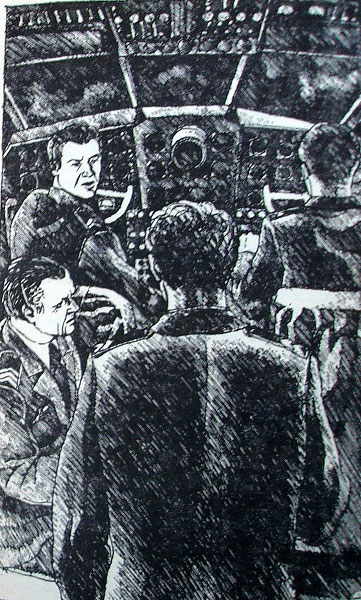 Но Дима уже ткнул красную кнопку второго двигателя, а дальше, работая двумя руками, повторил все операции, проделанные до этого командиром и вторым пилотом: аварийный «флюгер», кран останова, пожарный кран… На этот раз, однако, табло «Пожар 2-го двигателя» не погасло даже после ручного включения противопожарной системы, и бортмеханик потянулся к тумблеру «2-я очередь» – на каждом крыле Ил –18 рас положены по две группы огнетушителей, по комплекту на двигатель, однако при необходимости, если пожар не гаснет, их можно разрядить по очереди на один и тот же мотор. Но в этом случае крыло останется без огнетушителей, и, если загорится на этом крыле второй двигатель, тушить его уже будет нечем.