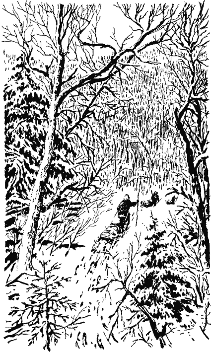 Как и надо было ожидать, к рассвету мороз усилился до 32° С. Чем дальше мы отходили от Сихотэ-Алиня, тем ниже падала температура. Известно, что в прибрежных странах очень часто на вершинах гор бывает теплее, чем в долинах. Очевидно, с удалением от моря мы вступили в «озеро холодного воздуха», наполнявшего долину реки Уссури.