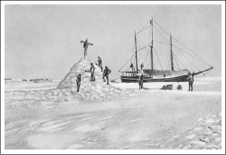 Часть команды тем временем во главе со Свердрупом занялась скалыванием торосистой гряды у левого борта, и в ней была пробита порядочная брешь.