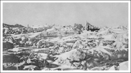 Лед, по которому мы идем, в общем необыкновенно ровен, если не считать новообразовавшихся полыней и торосов. Те и другие занимают, однако, ограниченные области, между которыми лежат длинные равнины. Все полыньи тянутся преимущественно в одном и том же направлении, приблизительно поперек нашего курса с небольшим уклоном на юго-запад; они идут главным образом с ВСВ на ЗЮЗ (по компасу).
