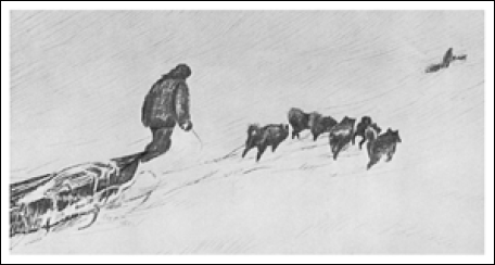 Я стоял на высоком торосе, погрузившись в эти мрачные раздумья и разглядывая лед на юге – полыньи за полыньей, торос на торосе, – как вдруг прямо за спиной послышалось хорошо знакомое пыхтенье. Вот ответ на мою тревогу! Мы не умрем с голода: здесь водится морской зверь, ружья и гарпуны у нас, слава богу, есть и пользоваться ими мы тоже умеем. В полынье пыхтело, сопело и плескалось целое стадо нарвалов. Так как высокие нагромождения льда почти скрывали их от меня, я лишь изредка улавливал мельканье серых спин, выгибавшихся горбами над черной водой. Долго стоял я и глядел на их игру, и все время оставались они на месте; если бы у меня было с собой ружье и гарпун, нетрудно было бы убить одного из них. Да, да, по существу, наши дела не так уж плохи, и пока нам не остается ничего другого, как, не обращая внимания на полыньи, держать курс на ЮЗ или ЮЗЮ и пробиваться насколько возможно дальше. С этим решением я и вернулся к нартам. Ни один из нас, правда, не был твердо уверен, что нам удастся уйти далеко. Вот почему, тронувшись в путь, мы обрадовались тому, что идем довольно быстро, несмотря на крайнюю усталость собак.