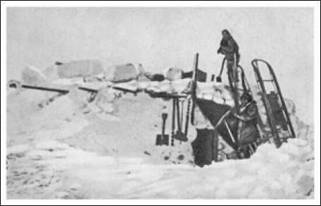 Экипаж с лихорадочной поспешностью стал перетаскивать на судно вещи, лежавшие на льдине, и успешно справился с этой работой, хотя она была сопряжена с немалой опасностью для лодок, которые от сильного шквала, среди бешено крутившихся льдин и обломков ледяных глыб легко могли перевернуться и затонуть. Льдина с развалинами кузницы медленно удалялась тем же путем, что и Большой торос, долгое время служивший нам своего рода вехой. Он действительно издали был похож на морской знак, тем более, что на самую макушку его была надета темная шапка: опрокинутый вверх дном большой железный котел. Котел в свое время был куплен Тройнтгеймом и поступил на судно в Хабарово вместе с собаками. При походе через Сибирь он служил для варки пищи собакам. У нас в нем обыкновенно хранили сало и другую пищу для собак. От долгой службы котел проржавел до дыр и, получив отставку, был выброшен на торос близ кузницы. Теперь он обратился, как сказано, в морской знак и, быть может, по сей день плавает в качестве такового, если только его не нашли и не присвоили себе какие-нибудь эскимоски на восточном берегу Гренландии.
