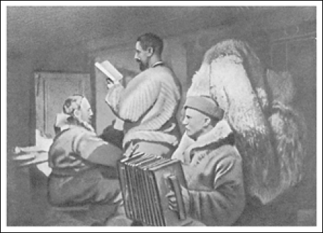 На следующий день, 1 августа, в Хабарово был большой праздник – Ильин день. Ненцы, ближние и дальние, прибыли со своими оленьими упряжками для празднования этого дня. Вначале они побывали в церкви, потом– все перепились до бесчувствия. Нам непременно нужны были с утра люди, чтобы накачать пресной воды в машинный котел и налить бочонки питьевой водой; по случаю праздника нельзя было найти ни одного человека. В конце концов, пообещав щедрое вознаграждение, Тронтхейму удалось завербовать нескольких бедняков, у которых не хватало денег, чтобы вечером напиться, как подобало в такой день.