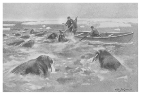 Вооруженные большим паровым шлангом, ищем своих врагов повсюду, где только могли они найти себе убежище, – шпарим матрацы, диванные подушки и т. п. Носильное белье и одежду запихиваем в бочку; плотно забиваем крышку, вводим в отверстие шланг и впускаем туда пар. Внутри слышен гул и свист, пар выползает понемножку в щели, а мы радуемся, думая о том, как теперь им там должно быть тепло и приятно. Как вдруг – пфф!.. Бочка с треском лопается, пар вылетает со всех сторон, и крышку вышибает взрывом на другой конец палубы… Гнусный враг, надеюсь, истреблен полностью. Юлл проделал эксперимент: посадил клопа на конец доски и хотел заставить его ползти на север. Тот, однако, не двигался. Тогда он взял сечку для моржового сала и стал постукивать им по доске, чтобы заставить насекомое двинуться; клоп уперся и только головой вертел, упрямец. «Убей ты его», – посоветовал Бентсен. «Ну, я взял багор и пронзил его», – рассказывал потом Юлл».