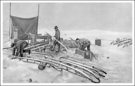 «Воскресенье, 10 июня. Довольно странно, что никого из нас до сих пор не поразила снежная слепота за исключением доктора, который дня два тому назад после игры в мяч на льду вдруг почувствовал ее приступ. Весь вечер он неудержимо проливал мужественные слезы, но скоро все прошло. Довольно оскорбительная насмешка судьбы, что именно доктора первого поразила эта болезнь». Впоследствии у нас было еще несколько легких случаев снежной слепоты; кое-кто вынужден был временно носить темные очки. Но все случаи оказались легкими и произошли потому, что вообще у нас не считали нужным принимать какие-либо меры предосторожности.