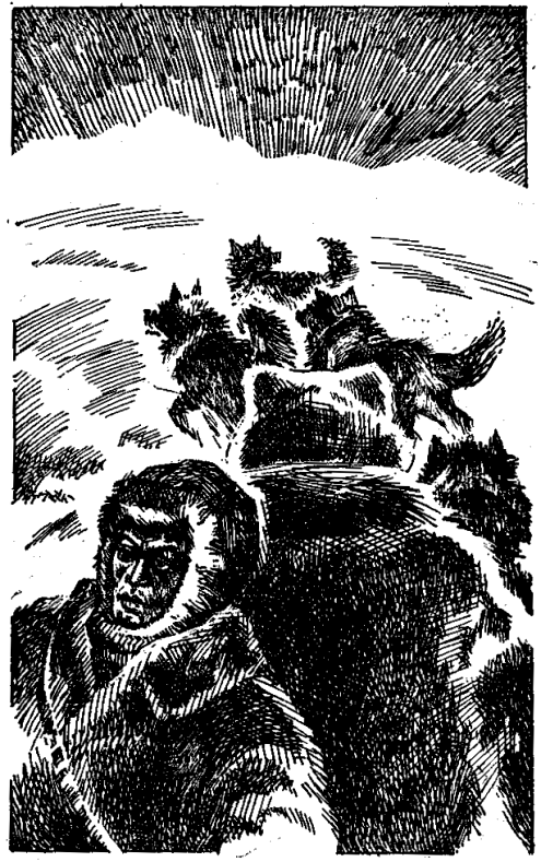 Выколотили кухлянки. Пол устлали оленьими шкурами. Куркутский достал пузырь моржа, в котором хранился керосин, и заправил примус. Оттыргин набил большой чайник снегом. Скоро загудел примус, и в снежном домике стало тепло и уютно. У входа лежали вожаки упряжек и несколько собак. Они не ссорились, а, свернувшись калачиком, следили за людьми голодными глазами, ожидая своей порции. Остальные собаки были под снегом снаружи.