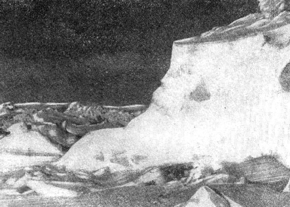 Но этот припай еще не прочен. Бывает, что при первом же сильном ветре с берега его срывает и относит в море пли морской ветер сжимает его и комкает. Слышится грохот, скрежет, удары падающих льдин. И вдруг ветер и течение, как бы сговорившись, в один прием выравнивают кромку припая и громоздят вдоль него большие, трудно проходимые торосы, которые издали похожи на большой горный хребет.