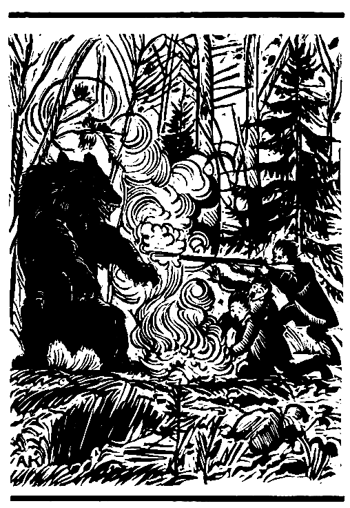 — Зажигай бересту, язви вас!- кричит Петча и целит в зверя.