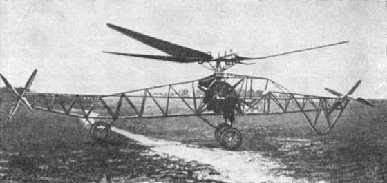 В случае остановки мотора, как показали исследования студента Сорокоумовского, геликоптер может спокойно опуститься на землю на авторотирующем большом винте».