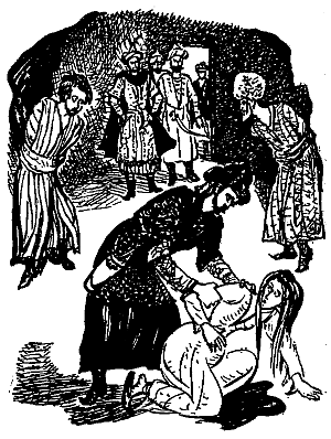 Старик, беду на пороге чуя, сильно оттолкнул сына и торопливо заговорил: