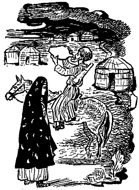 К ночи ближе, когда праздник продолжался уже на улице селения, нищенка осторожно поднялась и тихо отошла от толпы пирующих. Ее провожали лишь глаза Годжука Мергена. Она шла небыстро и все отдалялась, отдалялась, пока совсем не растворилась в подступающей темноте пустыни. И никто не знал, кто она и куда шла. И никто об этом не спрашивал.