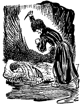 Кругом снова было тихо. Мялик опять набрался смелости и пошел к двери. Теперь он осторожно отодвинул ногой ичиги в сторону и пролез в кибитку. Там он вынул свой нож из чехла, крепко сжал его в кулаке и прикусил нижнюю губу.