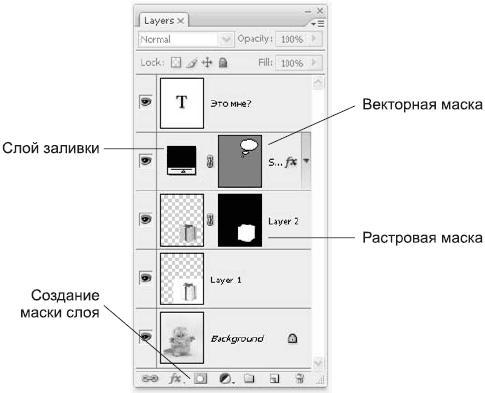 Рис. 19.1. Палитра Layers (Слои) и созданные маски слоев