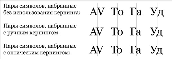 Рис. 20.10. Варианты выполнения кернинга для пар символов