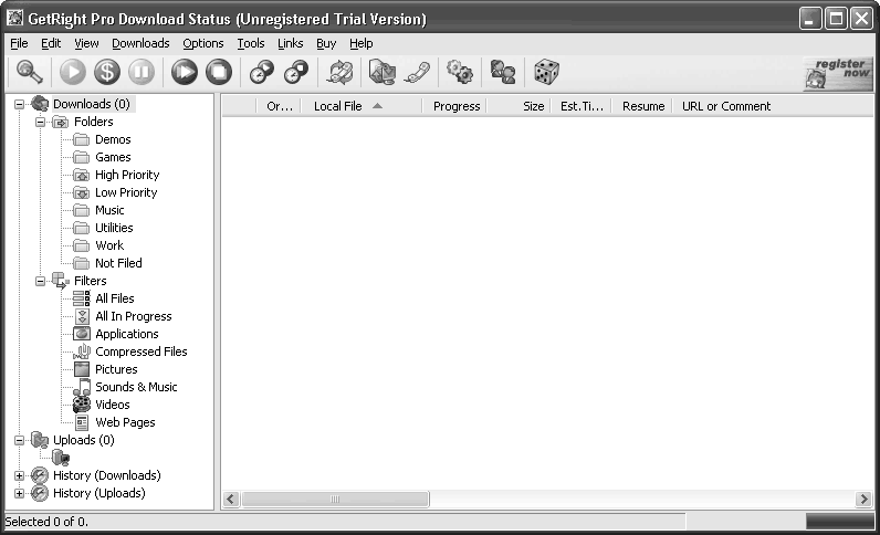 В силу своей платности и ориентации на англоязычную аудиторию программа не получила широкого распространения на просторах русскоязычного Интернета. GetRight имеет множество самых разнообразных настроек, что поз воляет практически любому пользователю приспособить ее под себя. От большинства менеджеров закачек GetRight отличается поддержкой обложек – возможностью менять внешний вид программы. Из всех рассматриваемых менеджеров такой возможностью могут похвастаться еще Download Master и ReGet. Впрочем, это может пригодиться лишь любителям различных «украшательств», так как внешний вид программы никак не влияет на ее функциональность, да и стандартная обложка данного менеджера закачек (рис. 2.4) выглядит вполне симпатично.