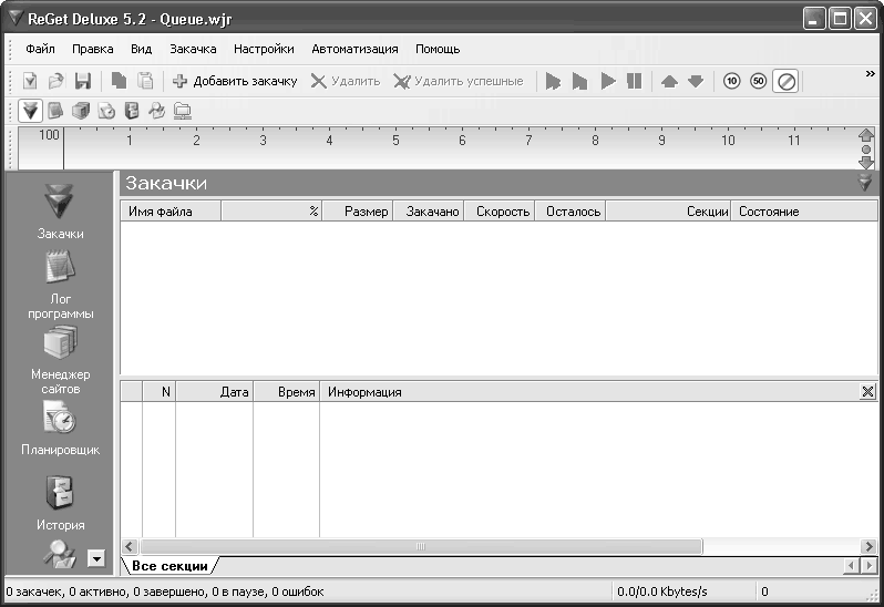 Главное отличие данного менеджера закачек от своих собратьев (или конкурентов) – наличие трех вариантов поставки: ReGet Deluxe (рис. 2.5), ReGet Deluxe Personal и ReGet Junior.