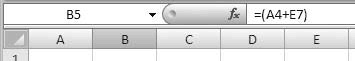 Строка формул состоит из двух основных частей: адресной строки, которая расположена слева, и строки ввода и отображения информации. На рис. 3.6 в адресной строке отображается значение В5, а в строке ввода и отображения информации – формула =(А4+Е7).