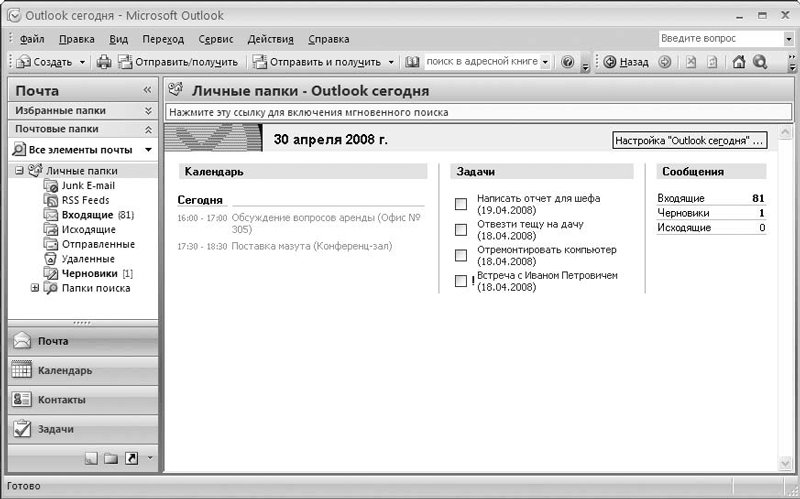 Рис. 5.1. Программа Microsoft Outlook 2007