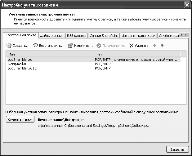 Рис. 5.6. Учетные записи почты