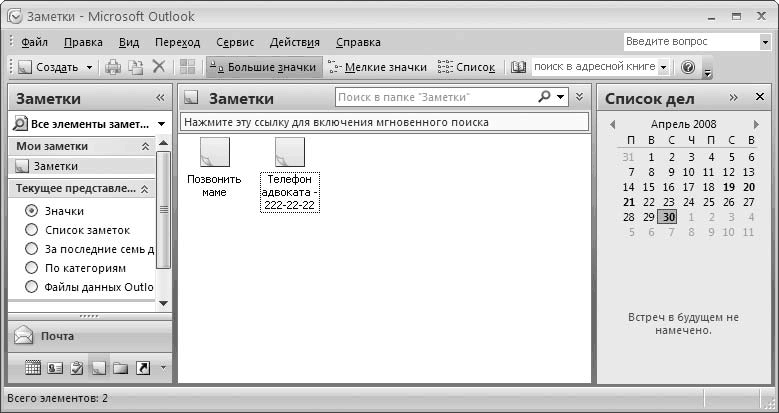 Рис. 5.10. Окно программы для работы с заметками в Microsoft Outlook 2007