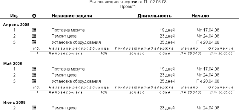 На рис. 8.12 вы видите пример отчета Выполняющиеся задачи.