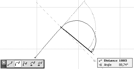 – метод, вызываемый этой кнопкой, отличается от предыдущего тем, что пользователь задает направление дуги сам. Первым щелчком кнопкой мыши задается направление построения дуги, вторым – определяется ее конечная точка (рис. 3.19).