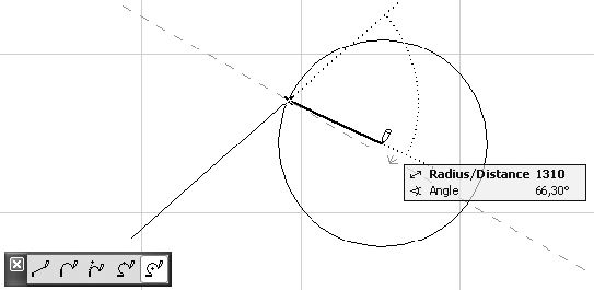 – активна по умолчанию при вызове инструмента построения полилинии и означает, что в данный момент будет строиться прямолинейный сегмент. Ее также необходимо выбирать, если после построения дугообразного сегмента нужно построить прямолинейный.