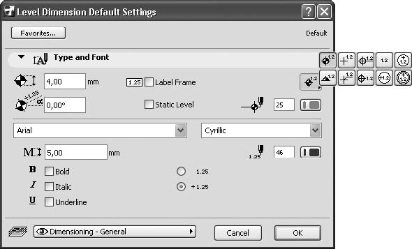 Разделы Text Style (Стиль текста) и Custom Settings (Специальные параметры) рассматривать не будем, так как все параметры первого из них уже вам знакомы, а второй недоступен, поскольку в стандартной поставке ArchiCAD нет символов выносной надписи, параметры которых устанавливаются в этом разделе.