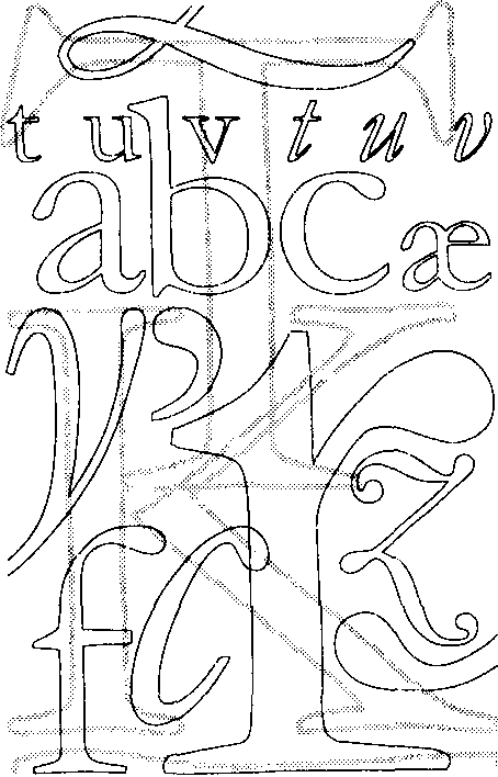 Многие графические особенности классической антиквы, сохранявшиеся и видоизменявшиеся в исторически более поздних шрифтах, — засечки, утолщение вертикальных штрихов по сравнению с горизонтальными — впервые возникли как подражание рукописным буквам, выводимым пером с плоским концом. В эту эпоху заимствования из рукописной графики еще не были «переосмыслены» или «обобщены», а оставались довольно близкой к оригиналу имитацией. Этим объясняется сложность, явственная «рукописность» форм, общая легкость и элегантность рисунка, свойственная как оригинальным шрифтам XV–XVII веков, так и их современным копиям (рис. 29). Особенно характерны для гуманистической антиквы сравнительно длинные засечки, иногда асимметричные и закругленные на концах, «ямки» на торцах основных штрихов, смещение наплывов на округлых частях букв из–за «наклона пера» (рис. 30).