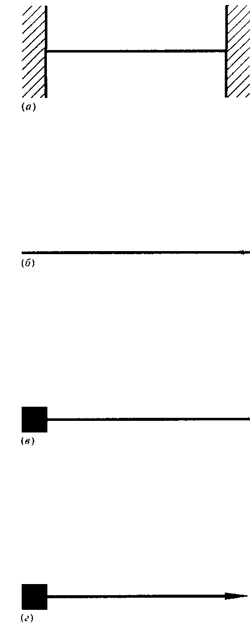 Если у линии свободен только один конец, а второй привязан к какому–то статичному, устойчивому объекту (будь то текстовая надпись, прямоугольник или что–то другое), возникшая асимметрия концов еще сильнее разгоняет восприятие. Отталкиваясь от «глухого» конца, взгляд наш разбегается и, как электрический заряд с острия, стекает с линии в бесконечность (рис. 45, в). Сделать этот полет еще более неудержимым можно, поставив у свободного конца линии небольшой, не мешающий «съезжанию» динамичный объект — треугольник, наконечник стрелы (рис. 45, г).