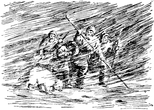 Химков, обняв за плечи сына, вглядывался в пургу. Вот он решительно повернулся к товарищам.
