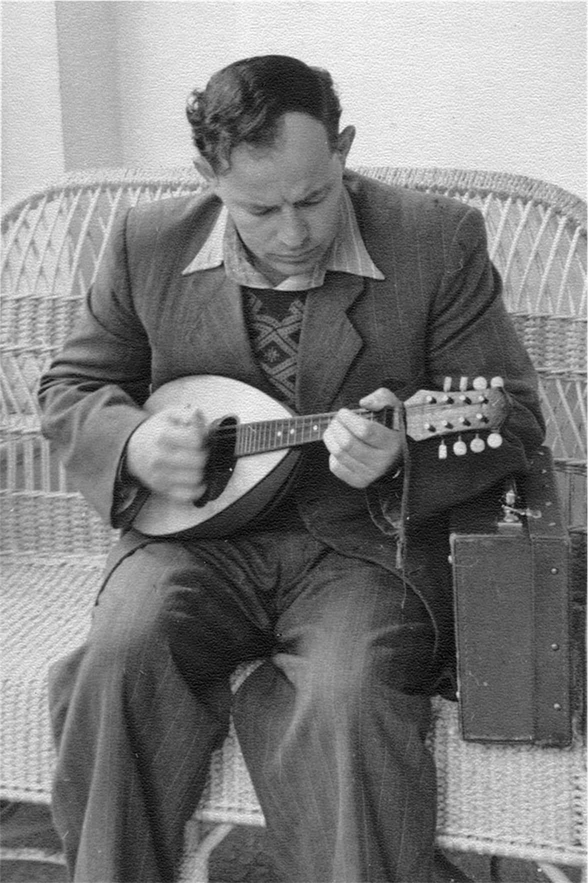 Баковка, 1950-е. З. Паперный играет на мандолине. Архив семьи Паперных