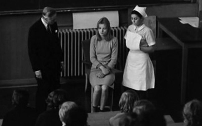 Скажу несколько слов о картине. Начну с последнего кадра. Аудитория медицинского факультета, перед студентами-медиками профессор. Идет разбор медицинских случаев. Прежде чем привести очередную пациентку, профессор вкратце рассказывает ее историю: «Молодая девушка. Хороший дом. Хорошее детство. Потом часто меняла работу. Попала в психиатрическую лечебницу». Вот в сущности и все, что он может сообщить.