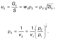 Массовым расходом называется количество вещества, которое за секунду вытекает через насадки. Оно равно отношению секундного объема истечения вещества (газа) У2 к удельному объемутого же вещества соответствующего давлению p2: