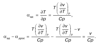 аад < aдрос, где адрос – температурный эффект адиабатного необратимого расширения (т. е. дросселирования), а аад– эффект адиабатного обратимого расширения. Отсюда при одном давлении dp имеем: