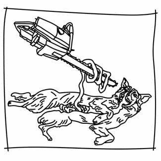 Работы действительно стало больше, обед мы на время упростили. Вместо супа и второго питались гречкой или рисом с тушенкой, что тоже было неплохо. Вместо салата ели овощи вприкуску. В этом был свой шик. Первый день я почти целиком орудовал бензопилой – распиливал доски на колышки для деревянной опалубки. Это был психоделический опыт. Идешь вдоль длинной доски, распиливая ее, вчерашняя водка льется с тебя рекой, перед глазами плавают какие-то белые фигуры, руки ходят ходуном. Потеряешь бдительность, поддашься своей слабости – лишишься конечности. Сон мой с понедельника на вторник был тревожным, руки сводило судорогой, я и во сне все еще пилил: сначала доски, потом дом, пристройку к которому мы делаем, потом вагончик с узбеками, потом собачью будку и саму собаку – ее я распилил вдоль туловища, она с визгом разлетелась на две симметричные части, а кишки обмотались вокруг бензопилы. С этим я проснулся на рассвете и заварил себе чай. Марат, Сигита, Михаил Енотов – по ним я сейчас скучал больше всего.