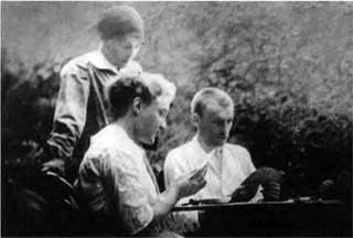 Игра в винт. Сидят:Надя и Миша; Тася, жена Булгакова, наблюдает за картами.