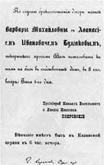 Приглашение на свадебный бал В. М. Покровской и А. И. Булгакова