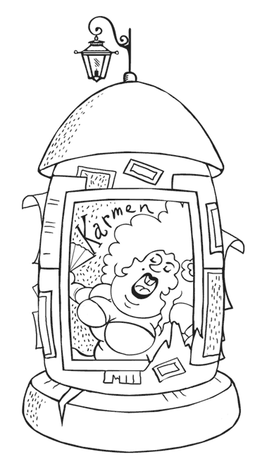 В самом центре Дорхольма есть афишная тумба. Целый месяц на ней висел огромный плакат с анонсом оперы. Фотографии оркестра, самого Бено, отдельно – фото талантливой и вредной Паолы Алерамичи. Старый комендант, негодяй, сначала отменил оперу, а потом застрелился. Нет бы наоборот. Одна афиша и осталась. И ту вдруг замазал расклейщик. Бено даже не заметил, откуда он взялся. Одно движение – и поверх фото счастливых музыкантов красуется объявление о розыске преступника.
