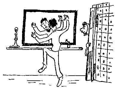 Долго мы занимались изготовлением реквизита — раздевально-одевального приспособления. Мыслилось так: машина перед сном мгновенно разденет человека, а когда он встанет с кровати, она молниеносно его оденет. Долго репетировали этот трюк, но так и не сделали. Хотя до сих пор мне кажется, что из этого могла бы получиться хорошая карандашевская клоунада. Видимо, мы что-то до конца не додумали.