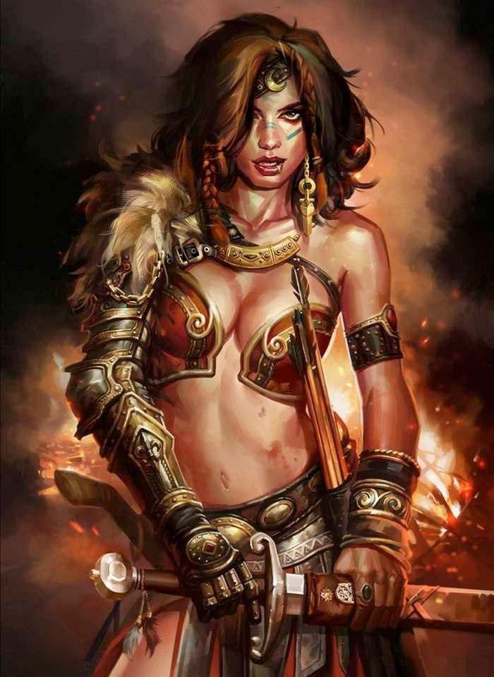Крестьянское платье, прикрывающее колени, отправилось в небытие. Вместо него рыжая бестия облачилась в кожаный доспех, подкрашенный красным. Хотя доспехом это было назвать сложно. Небольшой кожаный топ, едва сдерживающий напор двух полушарий, короткая юбка из полосок кожи, не доходящая до середины бедра. На поясе обосновалась перевязь, удерживающая ножны с коротким прямым клинком, а за спиной притаился небольшой лук. Общий воинственный вид довершали пластинчатые наручи.