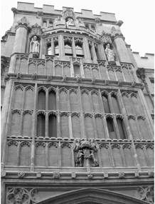 Один из самых древних колледжей Оксфорда – Мертон, основан в 1264 г. канцлером Англии Уолтером Мертоном. Этот колледж послужил образцом при создании многих других колледжей университета. Его учебные и жилые здания полностью обособлены, сгруппированы вокруг коллегиальной церкви. Здесь до сих пор студенты живут вместе с преподавателями, соблюдая средневековую традицию. Здания колледжа построены из местного желтого известняка. Крутые скаты крыши трехэтажного фасада с высокими печными трубами замаскированы ритмично следующими треугольными фронтонами одинаковой ширины, каждый из которых увенчивает секцию стены с двумя окнами. В центре здания высится мощная прямоугольная башня в перпендикулярном стиле – с двумя полукруглыми окнами в нишах, контрфорсами по углам и тремя высокими пинаклями с каждой стороны. Противоположный фасад колледжа выходит на ботанический сад, основанный в 1621 г., и луга Крайст-Черч, на которых стоит крупнейший колледж Оксфорда.