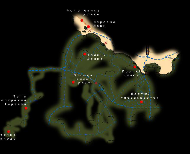 Тартар выдвинулся с новым фамильяром во второй половине следующего дня. Он шел на восток, в сторону моста, и мы здорово перепугались, что сейчас он начнет прочесывать здесь территорию так же, как и накануне на юге. Но он прошел мимо нашей базы и моста и двинул в ту часть леса, где я не бывал. За ним нужно было проследить, и я проследил, пока было светло. В темноте я здорово боялся, что чуткий орк меня услышит.
