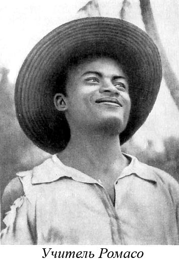 В день отъезда к нам явился некий бецимизарака с просьбой подвезти его. Он — учитель Рамасо [2] из Амбинанитело. Оказывается, там есть маленькая школа. Мы, конечно, охотно соглашаемся, хотя грузовик порядочно перегружен. Рамасо немногим больше тридцати лет. Одет он тщательнее других соотечественников. У него очень темная коричневая кожа и выразительный взгляд. Глаза черные, как у всех мальгашей, спокойные, интеллигентные, вызывающие доверие. Рамасо необычайно вежлив, но без тени угодливости.