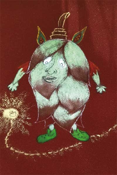 Цветуля дружила с Почколопом давно. Красавица июня Цветуля была так хороша, что все, кто был с ней знаком, влюблялись тотчас же. Её волосы развевались до самой земли: пышные, кудрявые, русого цвета, с вплетёнными цветами и душистыми травами, они были так хороши, что люди останавливались и подолгу вглядывались в цветущие кусты сирени, казалось, они искали там Цветулю. Среди ландышей, красных маков, лесных фиалок она незримо парила и неуловимо скользила туда, куда приближалась Жарень…