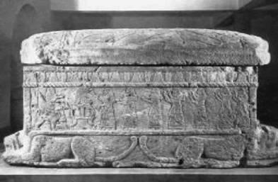 Самой примечательной находкой был один из трех саркофагов, обнаруженных в пятой гробнице. Он отличался от других не только своими размерами, но и формой. Если большинство саркофагов выглядели весьма незатейливо и их поверхность была гладкой, то этот саркофаг, достигавший в длину 2,3 метра, со всех сторон украшали искусные рельефы, изображавшие ритуальную процессию, которая приносила жертву некоему человеку на троне. Возможно, это и был сам царь Ахирам, вознесшийся теперь к богам. Рядом стояли женщины, оплакивавшие покойного, – в древности на Ближнем Востоке плакальщицы были привычными гостьями на похоронах. Саркофаг был украшен также орнаментом из листьев лотоса и покоился на четырех львах, чьи фигуры были исполнены в хеттском стиле. Сам же саркофаг напоминал лучшие работы египетских и сирийских мастеров. Все это свидетельствовало о высоком мастерстве древних библских камнерезов.